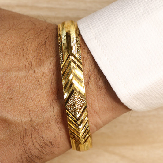 This bold, geometric-patterned gold Kada from Standtouch adds a statement of sophistication to your wardrobe. Featuring precise craftsmanship and a modern, luxurious design, it’s the perfect accessory for men who value style and elegance in every detail.
