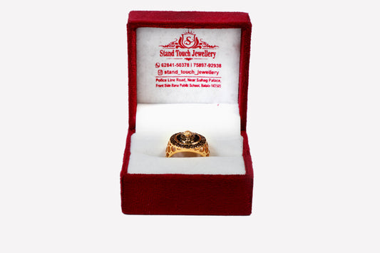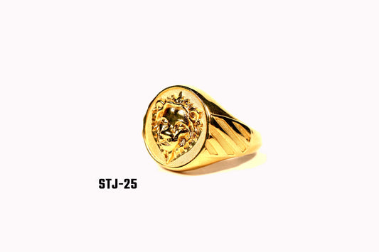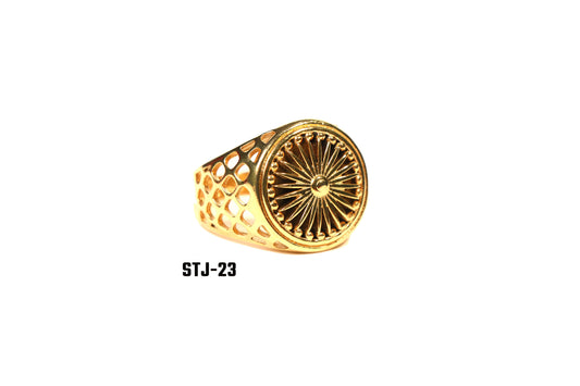 Circular Gold-Toned Ring for Men with Radiant Pattern Design