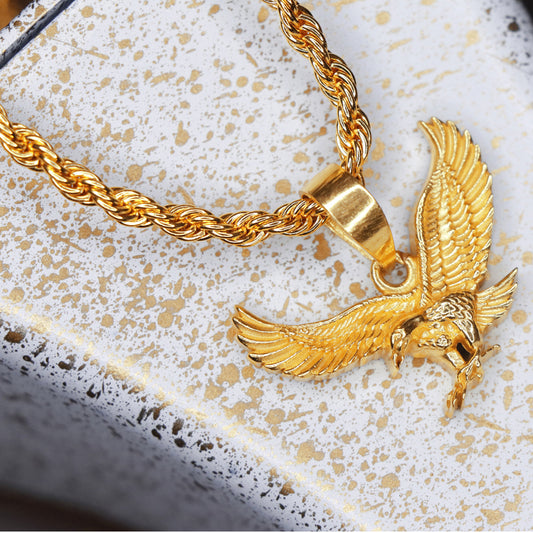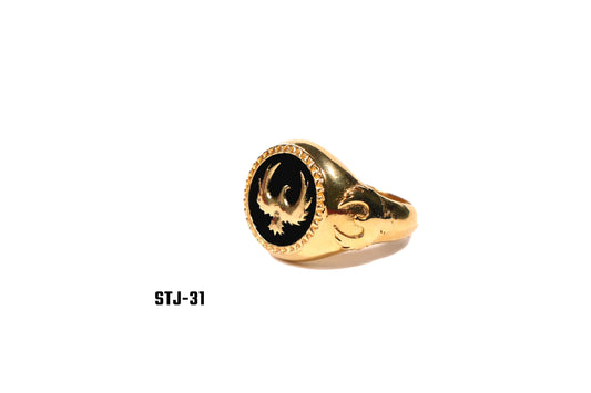 Gold Plated Men's Ring with Black Oval Design and Eagle Symbol