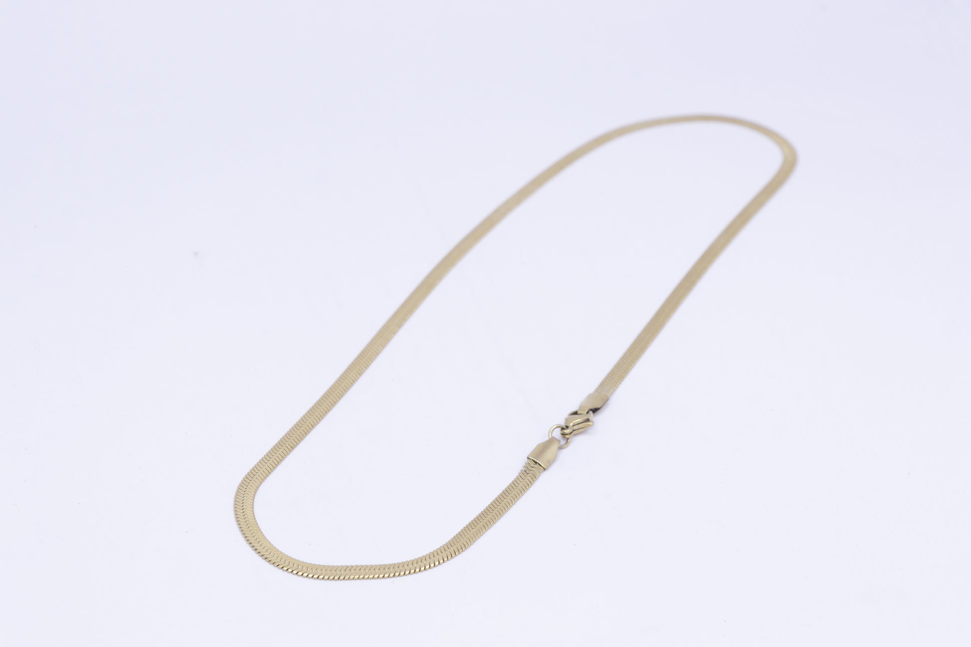 Elevate your style with this gold color Herringbone Chain designed specifically for men. Crafted to provide a smooth, flat, and flexible fit, this chain lies comfortably against the skin and reflects light beautifully for a sophisticated shine. Its timeless design offers versatility, perfect for both casual and formal occasions. Durable yet lightweight, it complements any outfit with an understated elegance that stands out effortlessly.