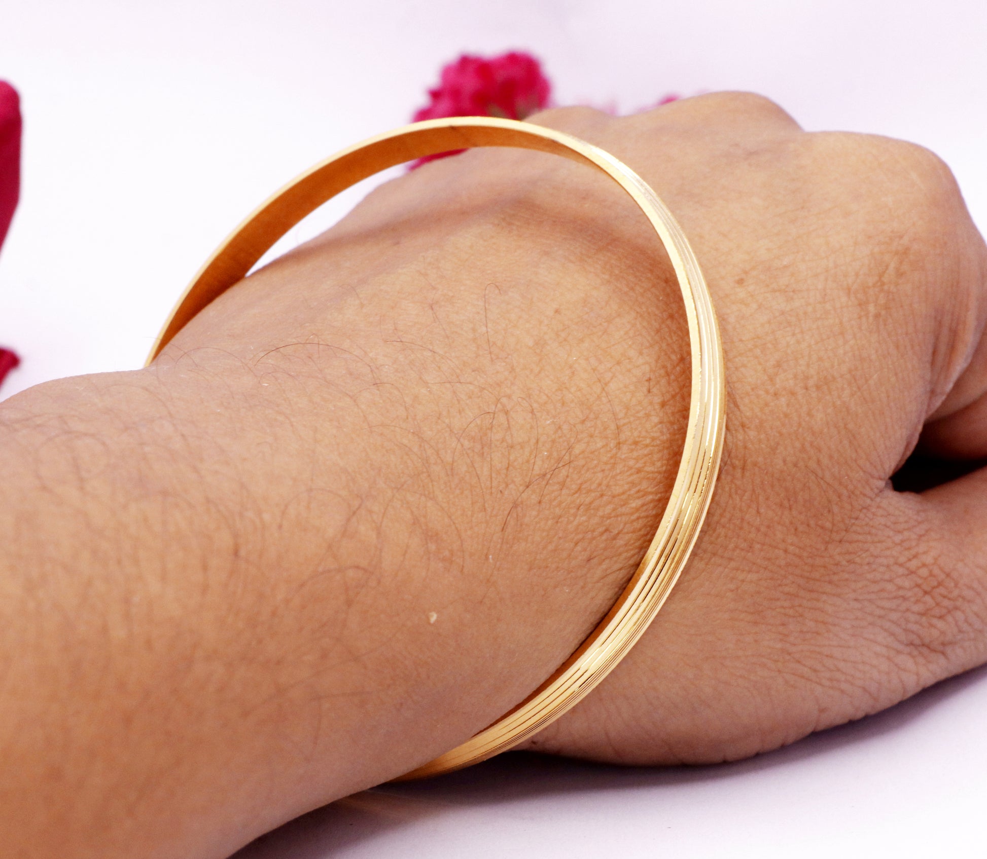This gold-colored simple pattern kada offers a refined and timeless accessory for men. Crafted with precision, its minimalist design ensures versatile wear, suitable for both casual and formal occasions. The smooth finish and subtle pattern add an elegant touch without overwhelming your style, making it a perfect choice for everyday sophistication.