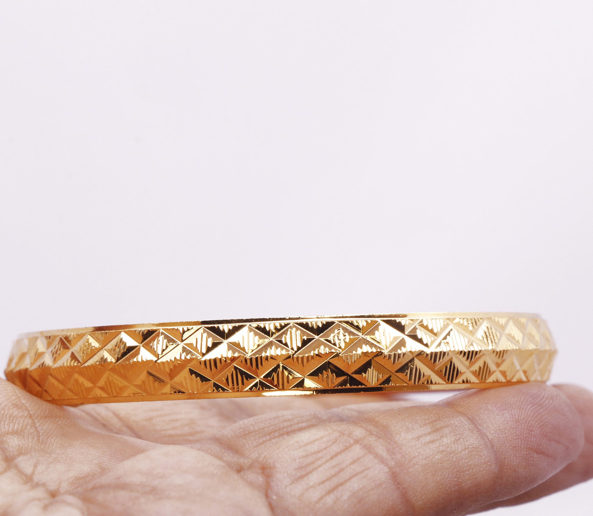 Elevate your style with this Gold Color X-Pattern Kada designed exclusively for men. Its distinctive X-pattern adds a modern edge, while the gold finish offers a timeless, sophisticated look. Crafted for comfort and durability, this accessory seamlessly complements both casual and formal attire, making it a versatile addition to any wardrobe.
