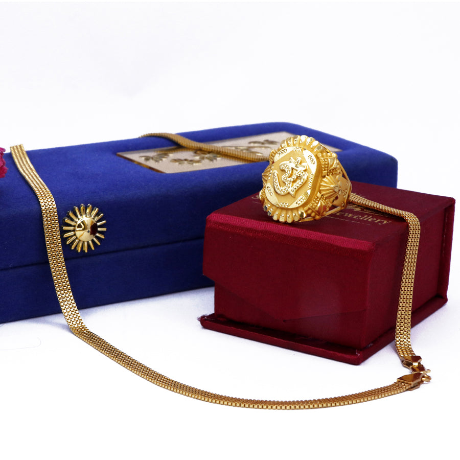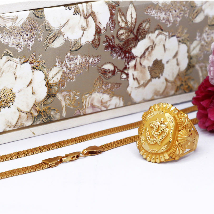 Elevate your style with this expertly crafted men's combo set featuring a gold-colored chain and matching ring. Designed for durability and subtle sophistication, this duo complements any outfit, adding a refined touch to your everyday or special occasion look. The gold hue offers timeless appeal, making it a versatile accessory that enhances your personal style with confidence.