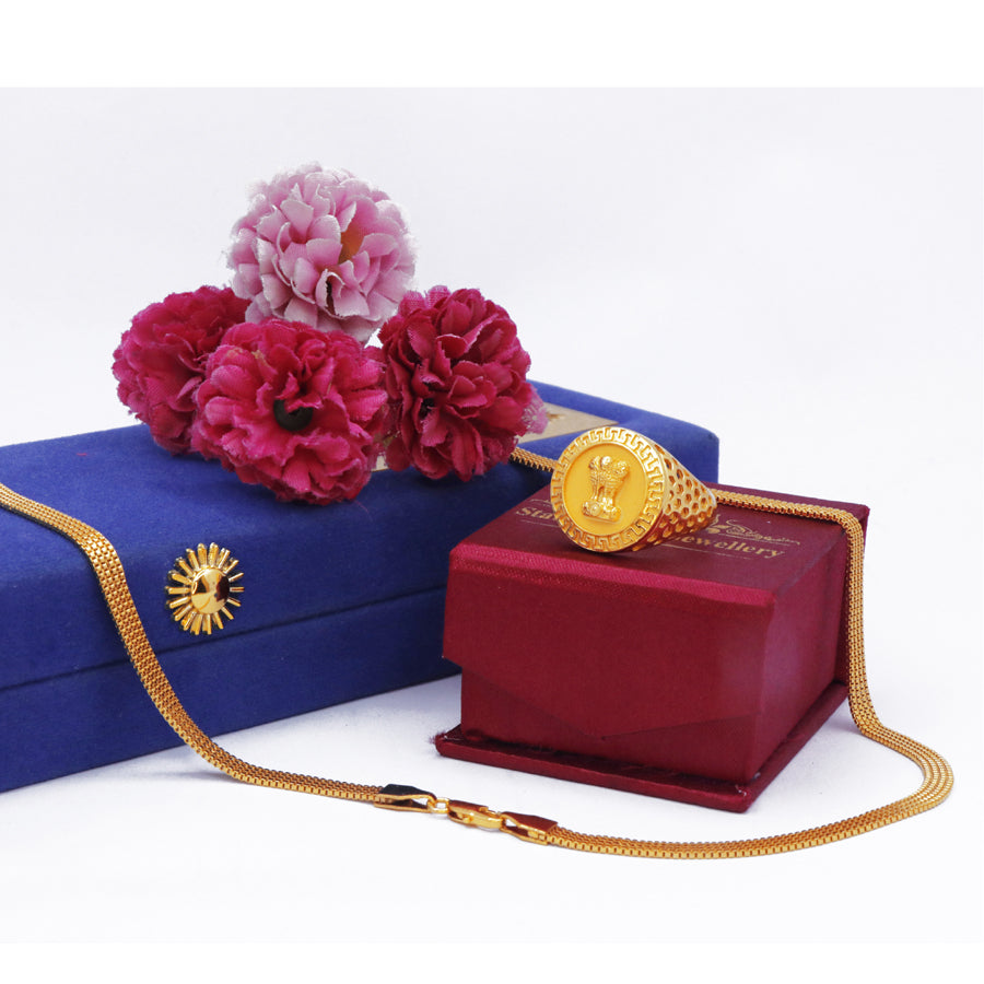 Elevate your style with this expertly crafted men's combo set featuring a gold-colored chain and matching ring. Designed for durability and subtle sophistication, this duo complements any outfit, adding a refined touch to your everyday or special occasion look. The gold hue offers timeless appeal, making it a versatile accessory that enhances your personal style with confidence.