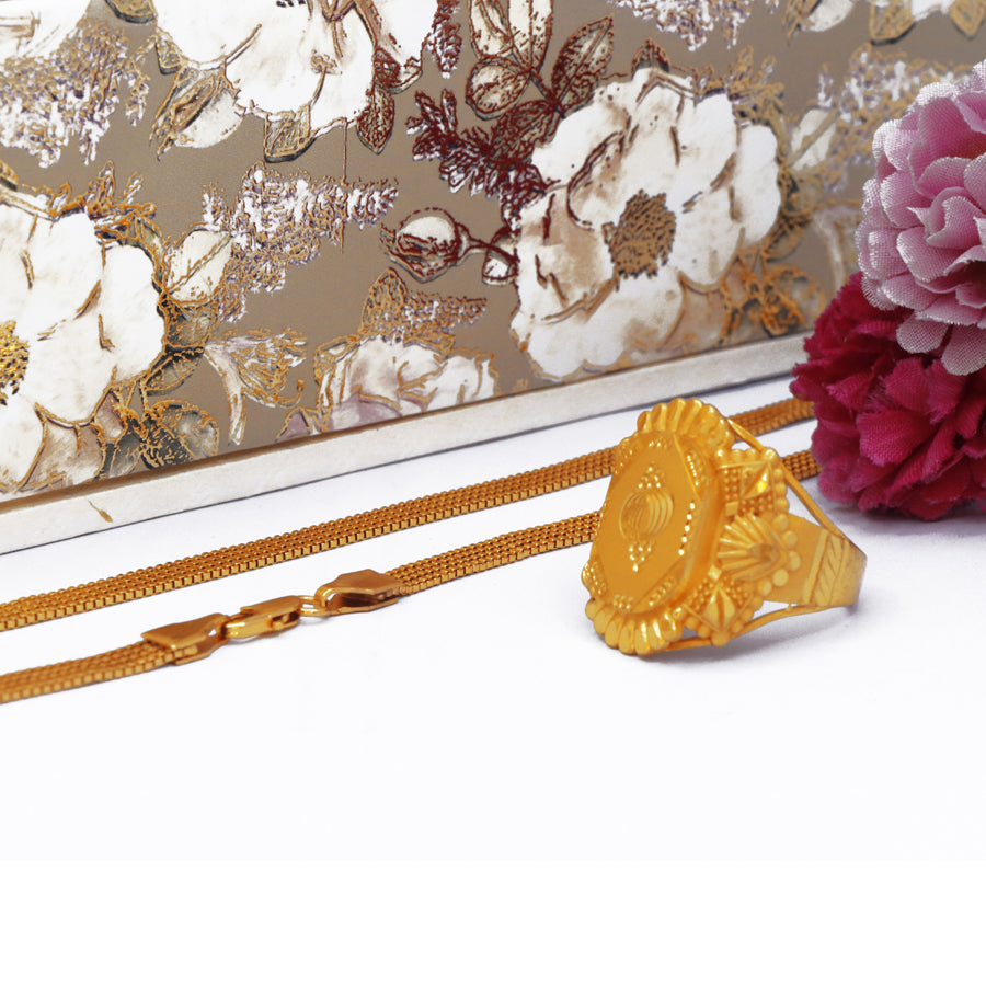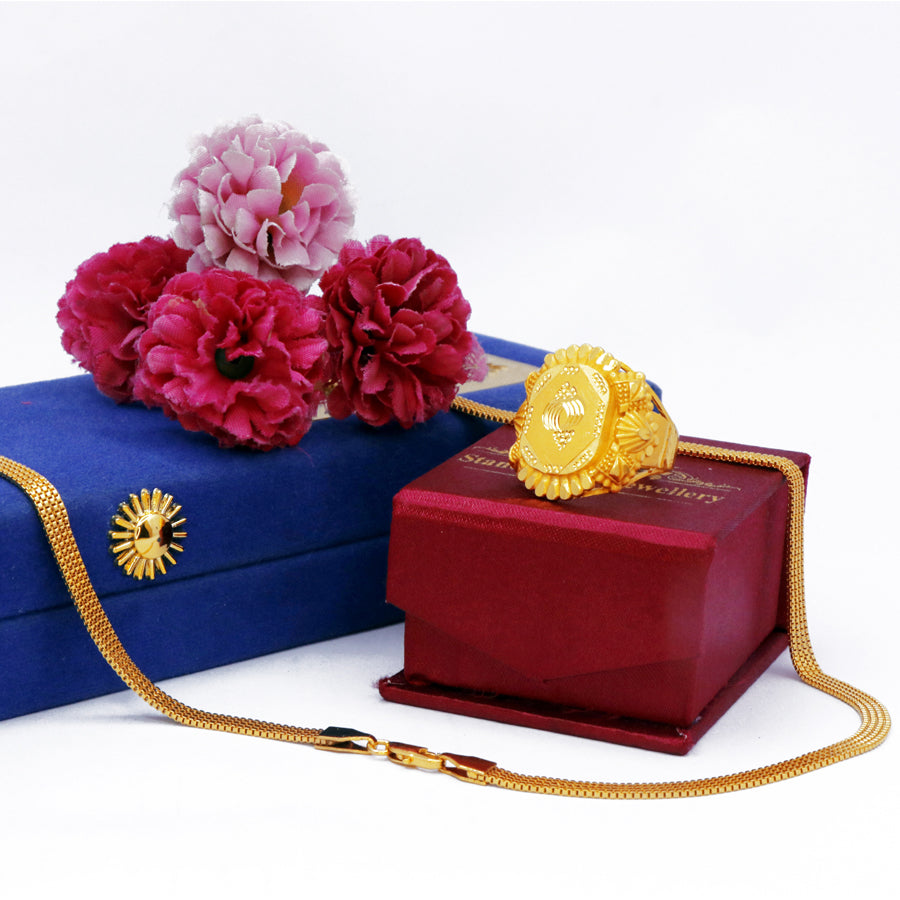 Elevate your style with this expertly crafted men's combo set featuring a gold-colored chain and matching ring. Designed for durability and subtle sophistication, this duo complements any outfit, adding a refined touch to your everyday or special occasion look. The gold hue offers timeless appeal, making it a versatile accessory that enhances your personal style with confidence.