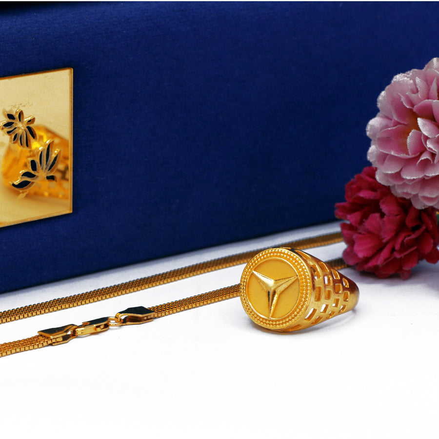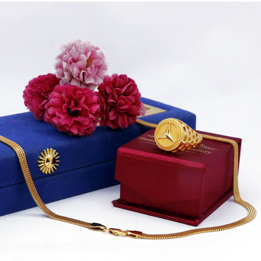 Elevate your style with this expertly crafted men's combo set featuring a gold-colored chain and matching ring. Designed for durability and subtle sophistication, this duo complements any outfit, adding a refined touch to your everyday or special occasion look. The gold hue offers timeless appeal, making it a versatile accessory that enhances your personal style with confidence.
