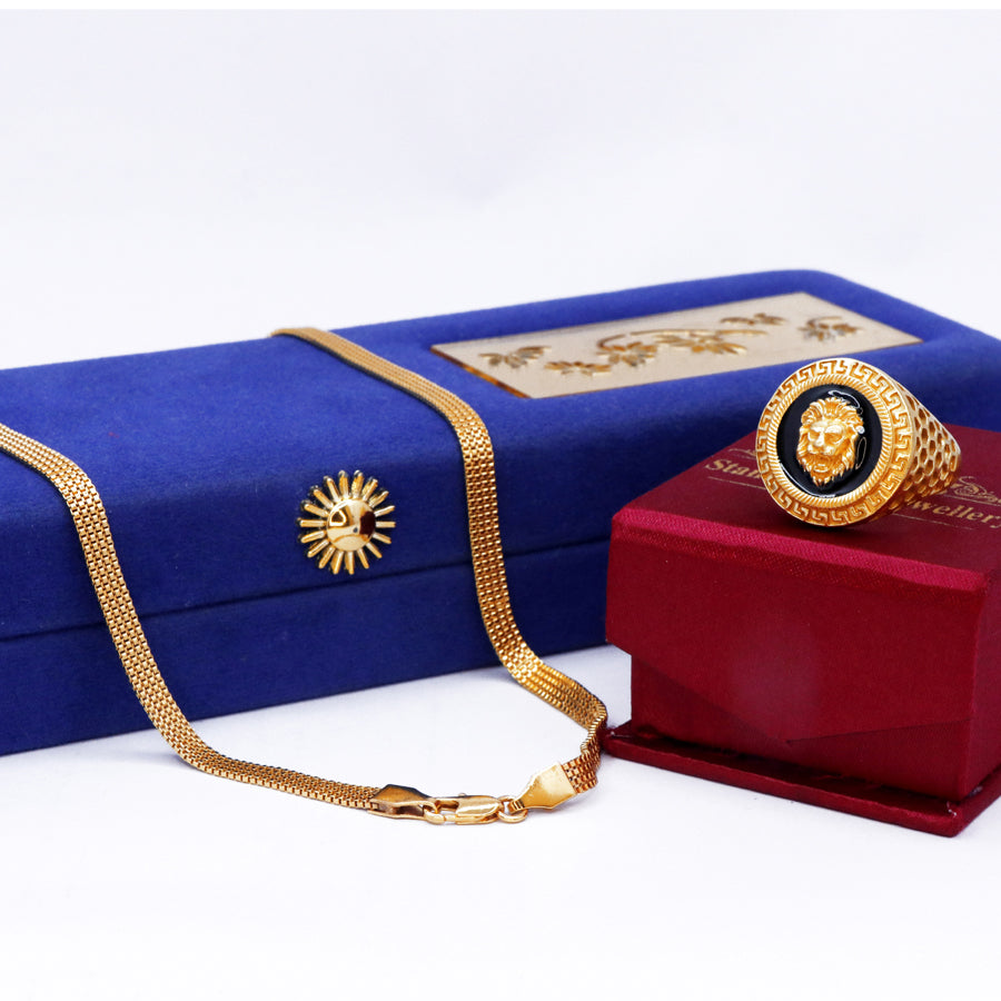 Elevate your style with this expertly crafted men's combo set featuring a gold-colored chain and matching ring. Designed for durability and subtle sophistication, this duo complements any outfit, adding a refined touch to your everyday or special occasion look. The gold hue offers timeless appeal, making it a versatile accessory that enhances your personal style with confidence.
